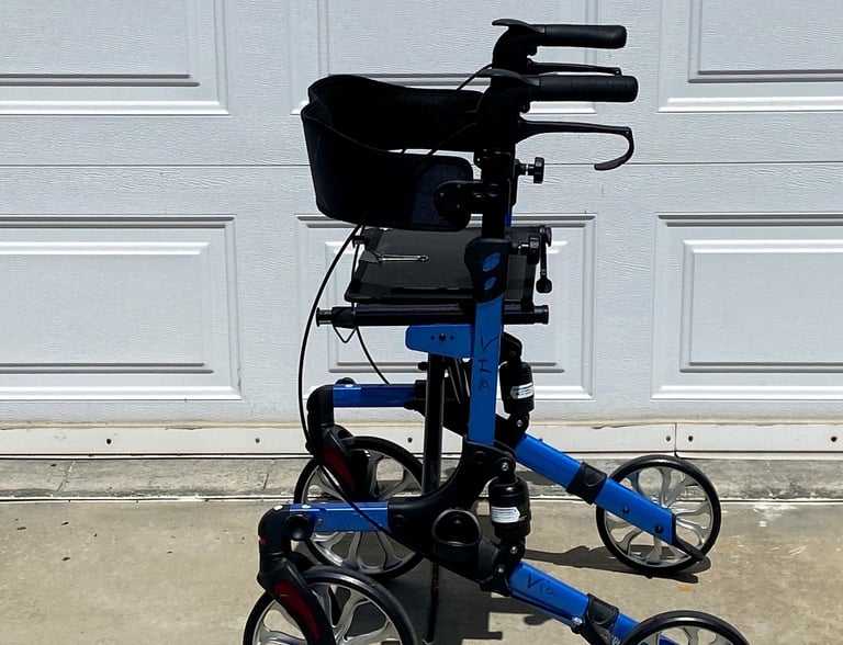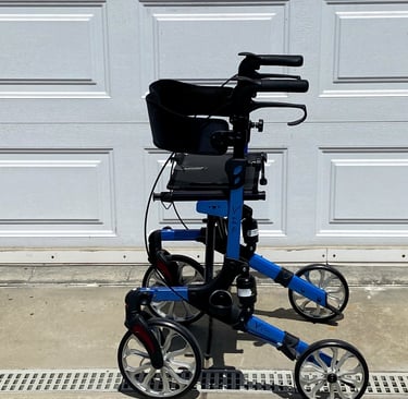 Buy a walker with wheels. Don't waste energy pushing two tennis balls along the floor. You will find you stand up straighter and are less tired at the end of the day.